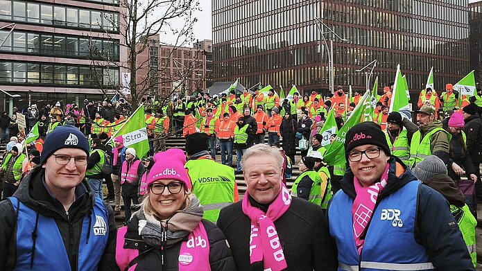 Der öffentliche Dienst und der Norden lassen sich nicht auseinanderdividieren - das haben die nördlichen dbb Landesbünde am 10. Februar bei einer gemeinsamen Aktion zur Einkommensrunde der Länder in Hamburg gezeigt. Unter den 2.200 Teilnehmerinnen und Teilnehmern waren viele Beschäftigte aus Schleswig-Holstein. Nachdem wir Kiel bereits auf der Straße waren, haben wir jetzt in Hamburg und damit am Sitz des ersten Vorsitzenden der TdL unsere Entschlossenheit gezeigt – die Arbeitgeber müssen in der entscheidenden Verhandlungsrunde ein abschlussfähiges Angebot auf den Tisch legen.